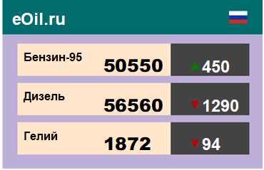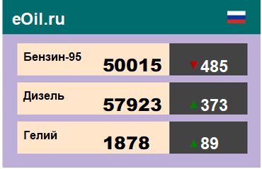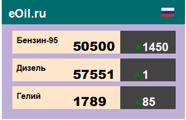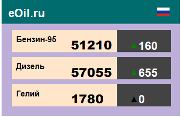 За прошедшую неделю в результате торгов на площадке eOil.ru были показаны следующие результаты электронных аукционов: цены на бензин неэтилированный АИ-95-К5, базис поставки Ханты-Мансийский АО, выросли за неделю на 1059 рублей до 50100 рублей за тонну. Цены на бензин неэтилированный АИ-92-К5, базис поставки Ханты-Мансийский АО, снизились за неделю на 295 рублей до 43795 рублей за тонну. Цены на топливо дизельное ДТ-А-К5, базис поставки Ханты-Мансийский АО, выросли за неделю на 303 рубля до 57847 рублей за тонну. Цены на пропан-бутан автомобильный, базис поставки Тюменская область, выросли за неделю на 2502 рубля до 13452 рублей за тонну. Цены на гелий газообразный, базис поставки Оренбургская область, выросли за неделю на 262 рубля до 1966 рублей за кубический метр.