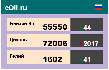 За прошедшую неделю в результате торгов на площадке eOil.ru были показаны следующие результаты электронных аукционов: Цены на бензин неэтилированный АИ-95-К5, базис поставки Ханты-Мансийский АО, выросли за неделю на 44 рубля до 55550 рублей за тонну. Цены на бензин неэтилированный АИ-92-К5, базис поставки Ханты-Мансийский АО, снизились за неделю на 50 рублей до 52700 рублей за тонну. Цены на топливо дизельное ДТ-А-К5, базис поставки Ханты-Мансийский АО, снизились за неделю на 2017 рублей до 72006 рублей за тонну. Цены на пропан-бутан автомобильный, базис поставки Тюменская область, снизились за неделю на 5700 рублей до 16200 рублей за тонну. Цены на гелий газообразный, базис поставки Оренбургская область, выросли за неделю на 41 рубль до 1602 рублей за кубический метр. Цены на конденсат газовый стабильный, базис поставки Краснодарский край, не изменились за неделю, и составляют 45000 рублей за тонну. |