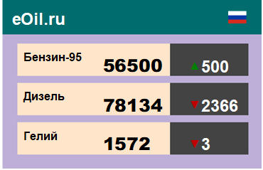 За прошедшую неделю в результате торгов на площадке eOil.ru были показаны следующие результаты электронных аукционов: Цены на бензин неэтилированный АИ-95-К5, базис поставки Ханты-Мансийский АО, выросли за неделю на 856 рублей до 56000 рублей за тонну. Цены на бензин неэтилированный АИ-92-К5, базис поставки Ханты-Мансийский АО, выросли за неделю на 2639 рублей до 51650 рублей за тонну. Цены на топливо дизельное ДТ-А-К5, базис поставки Ханты-Мансийский АО, снизились за неделю на 4898 рублей до 80502 рублей за тонну. Цены на пропан-бутан автомобильный, базис поставки Тюменская область, выросли за неделю на 5538 рублей до 27500 рублей за тонну. Цены на гелий газообразный, базис поставки Оренбургская область, выросли за неделю на 28 рублей до 1575 рублей за кубический метр. Цены на конденсат газовый стабильный, базис поставки Краснодарский край, не изменились за неделю, и составляют 41800 рублей за тонну.