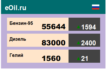 За прошедшую неделю в результате торгов на площадке eOil.ru были показаны следующие результаты электронных аукционов: Цены на бензин неэтилированный АИ-95-К5, базис поставки Ханты-Мансийский АО, снизились за неделю на 1208 рублей до 54560 рублей за тонну. Цены на бензин неэтилированный АИ-92-К5, базис поставки Ханты-Мансийский АО, снизились за неделю на 811 рубль до 50714 рублей за тонну. Цены на топливо дизельное ДТ-А-К5, базис поставки Ханты-Мансийский АО, выросли за неделю на 8150 рублей до 80550 рублей за тонну. Цены на пропан-бутан автомобильный, базис поставки Тюменская область, снизились за неделю на 945 рублей до 21038 рублей за тонну. Цены на гелий газообразный, базис поставки Оренбургская область, снизились за неделю на 58 рублей до 1551 рубля за кубический метр. Цены на конденсат газовый стабильный, базис поставки Краснодарский край, не изменились за неделю, и составляют 42167 рублей за тонну.