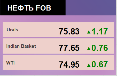 Цена на европейские сорта нефти Brent обновила многомесячный максимум, превысив $77,2 за баррель. На сырьевой рынок позитивно влияют данные по запасам нефти в США, а также ослабление американской валюты. В таких условиях рубль смог укрепиться против доллара вопреки планируемому расширению санкций против российского госдолга. Стоимость европейской нефти Brent 23 сентября впервые за два с половиной месяца поднялась выше уровня $77 за баррель. По данным агентства Reuters, котировки ближайшего контракта на поставку североморской нефти поднимались на 1,4% до $77,21 за баррель, максимального значения с 6 июля. За два дня цены выросли почти на 4%.