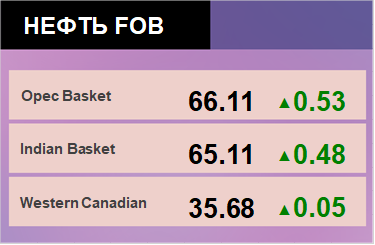 Так, к пяти утра по московскому времени цены на североморскую нефть Brent выросли на 0,14%, до 65,97 долларов за баррель. Западнотехасская нефть WTI к этому времени подорожала на процент, до 65,97 долларов за бочку.