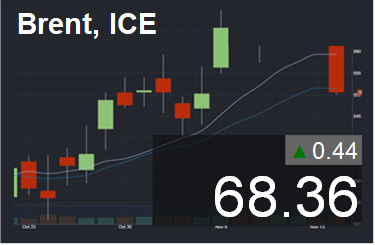 На Лондонской бирже ICE Futures к 8:15 по Москве фьючерсы на нефть Brent с поставкой в июне подорожали до 68 долларов 36 центов за баррель (+0,50%). На электронных торгах в Нью-Йорке нефть WTI с поставкой в мае выросла в цене до 63 долларов 67 центов за баррель (+0,47%). Накануне июньская Brent подешевела на 0,2% и стоила 68 долларов 2 цента за баррель, WTI закончила торги на отметке в 63 доллара 37 центов за баррель (-0,2%). По оценкам аналитиков, черное золото вчера дешевело из-за опасений эскалации торгового противостояния США и Китая и влияния их споров на другие страны.