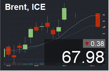 Мировые цены на нефть снижаются в среду утром перед публикацией недельных данных минэнерго США о запасах и добыче «черного золота» в стране, а также на фоне аналогичных опубликованных данных от Американского института нефти (API), свидетельствуют данные торгов. По состоянию на 7.52 мск стоимость июньских фьючерсов на североморскую нефтяную смесь марки Brent снижалась на 0,29%, до 67,92 доллара за баррель, цена майских фьючерсов на нефть марки WTI уменьшалась на 0,29% — до 63,36 доллара за баррель.