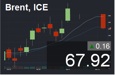 Стоимость июньских фьючерсов на североморскую марку Brent выросла на 0,1% и составляет в настоящий момент 67,71 долларов за баррель, а цена майских фьючерсов на техасскую марку WTI увеличивалась до 63,05 доллара за баррель.