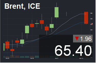 Цены на нефть эталонных марок продолжают снижаться в четверг на данных о росте добычи в США до рекордных уровней, сообщает Dow Jones. По итогам торгов в среду падение стоимости WTI было максимальным в текущем году, по данным FactSet. Апрельские фьючерсы на нефть марки Brent на лондонской бирже ICE Futures к 8:07 мск подешевели на $0,19 (0,29%) — до $65,32 за баррель. На торгах в предыдущий день их цена снизилась на $1,35 (2,02%) и составляла $65,51 за баррель — самый низкий уровень с 22 декабря. |