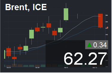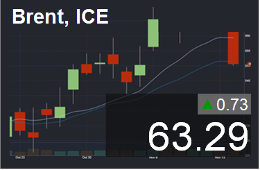 Нефть: опасения по поводу завершения революции ГРП в Америке усиливаются. Число буровых продолжает сокращаться. Уже в ближайший месяц это должно отразиться на объемах добычи, которые сейчас находятся на самой высокой за всю историю отметке 12.8 млн. баррелей в день. Сегодня будем пытаться закрепиться выше 63.00. Если это удастся, то движение к 67.70 станет реальностью. В противном случае мы можем вновь протестировать 60.00 в ближайшие дни. 28-го ноября в США День благодарения (четверг). Это выходной, поэтому активно торги будут идти только сегодня и завтра.