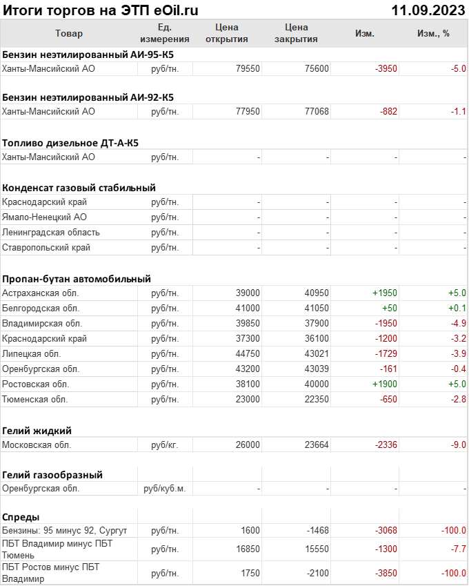 Итоги торгов на ЭТП eOil.ru 11 сентября 2023