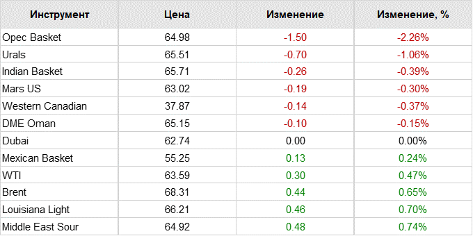 Нефть. Цены на сорта. Данные на 05.04.2018