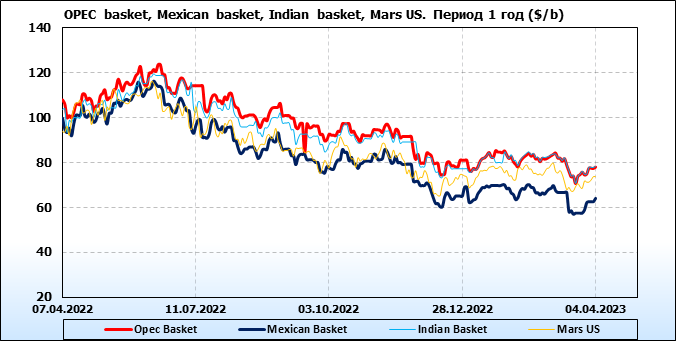 В марте цены на нефть Brent упали до $ 70 за баррель впервые с 2021 года на фоне банкротства нескольких банков в США и проблем одного из крупнейших банков Швейцарии Credit Swiss, однако к началу апреля восстановились почти до $ 80 за баррель.
