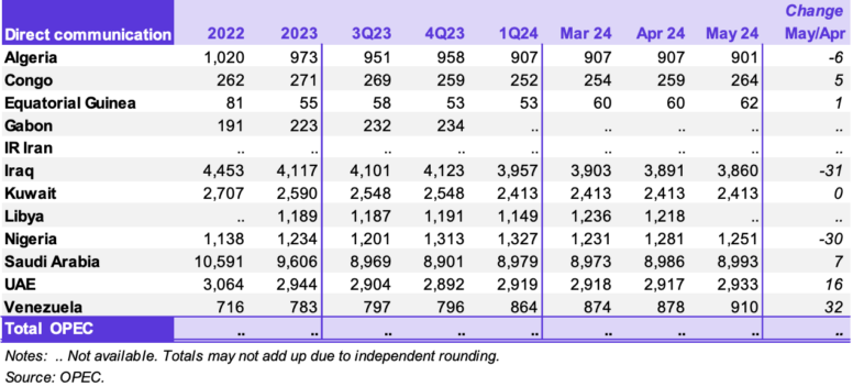OPEC. Объемы нефтедобычи по странам от 11 июня 2024